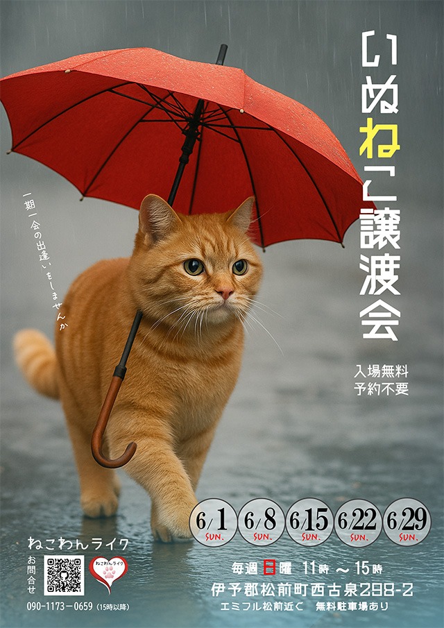 2025年6月保護犬猫譲渡会日程in 伊予郡松前町 ねこわんライク