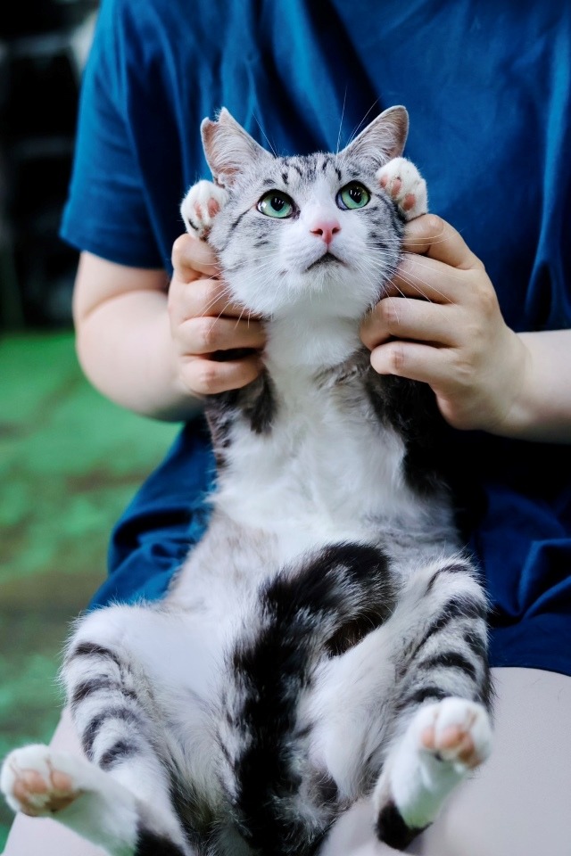 今日はスタッフさんのお膝の上で、爪を切ってもらいながら、チュールを食べました💕