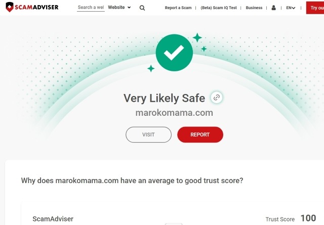 ちなみになんですけど、私のサイトもURLを入力してチェックしてもらいました!信用 スコア100でした!w