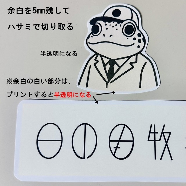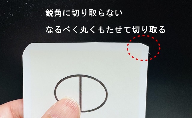 デザイン部分の周り5㎜程度余白を残して、なめらかにカットします。