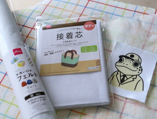 薄い布にアイロンプリントした場合は、フェルトを貼りつけたり、接着芯で補強すると型崩れしにくくなります。